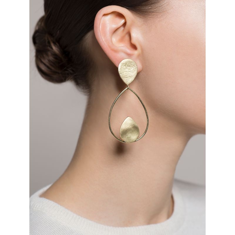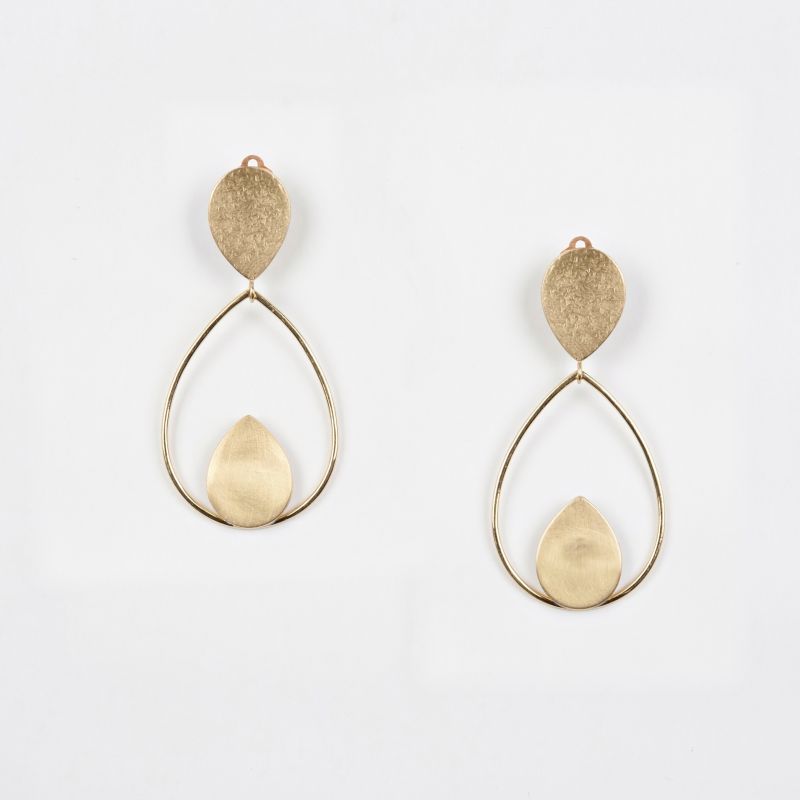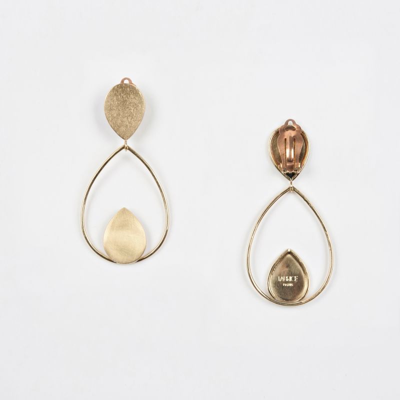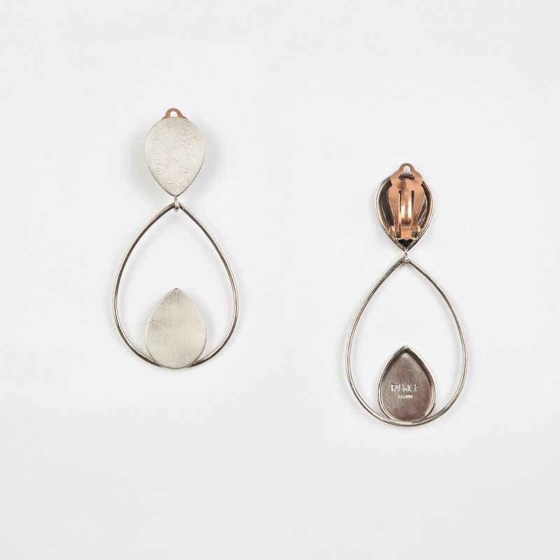 Seaweed long drop clip earrings in oxidized brass and altuglas.